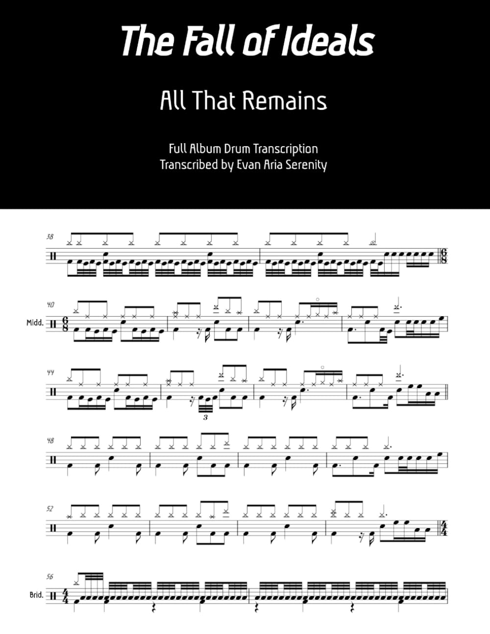 Drum sheet music transcriptions for the entirety of All That Remains’ 2006 album The Fall of Ideals. Drums by Shannon Lucas. Melodic metalcore, overall difficulty 4/5.