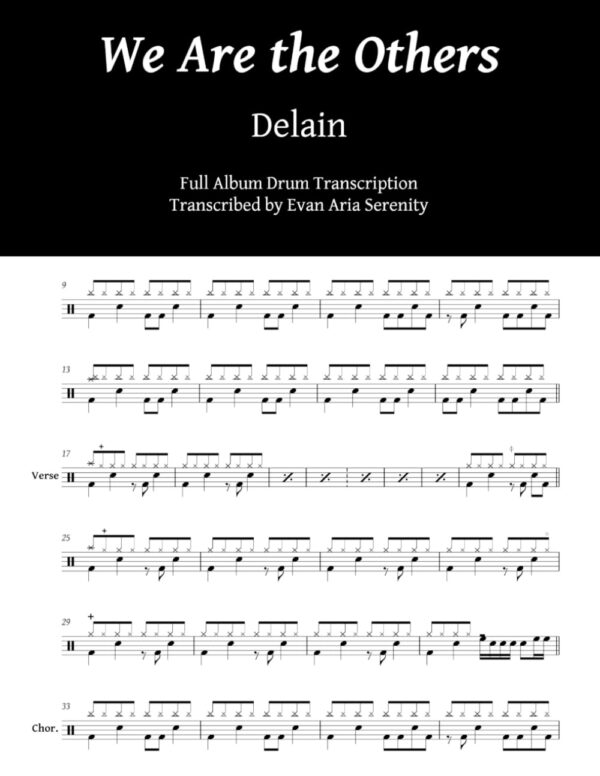 Drum sheet music transcriptions for the entirety of Delain’s 2012 album, We Are the Others. Drums by Sander Zoer. Symphonic metal, overall difficulty 4/5.